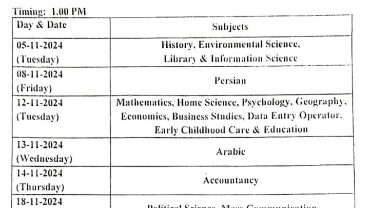 JKBOSE JKSOS Class 12th Annual Session 2024 Date Sheet Released
