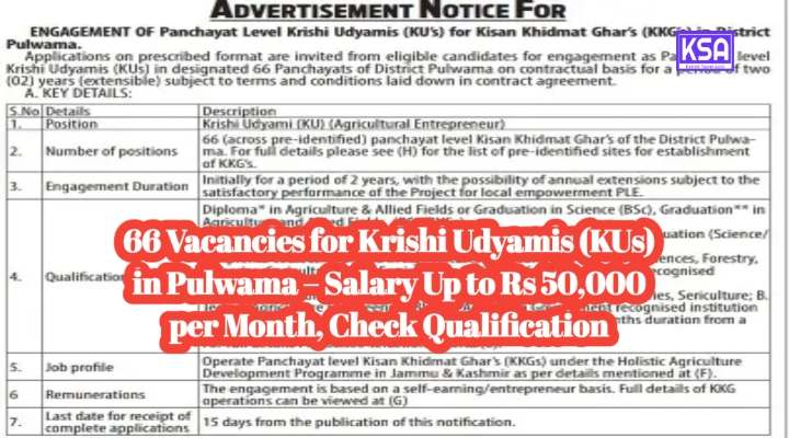 Engagement of Panchayat Level Krishi Udyamis (KUs) for Kisan Khidmat Ghars (KKGs) in Pulwama DistrictRead more
